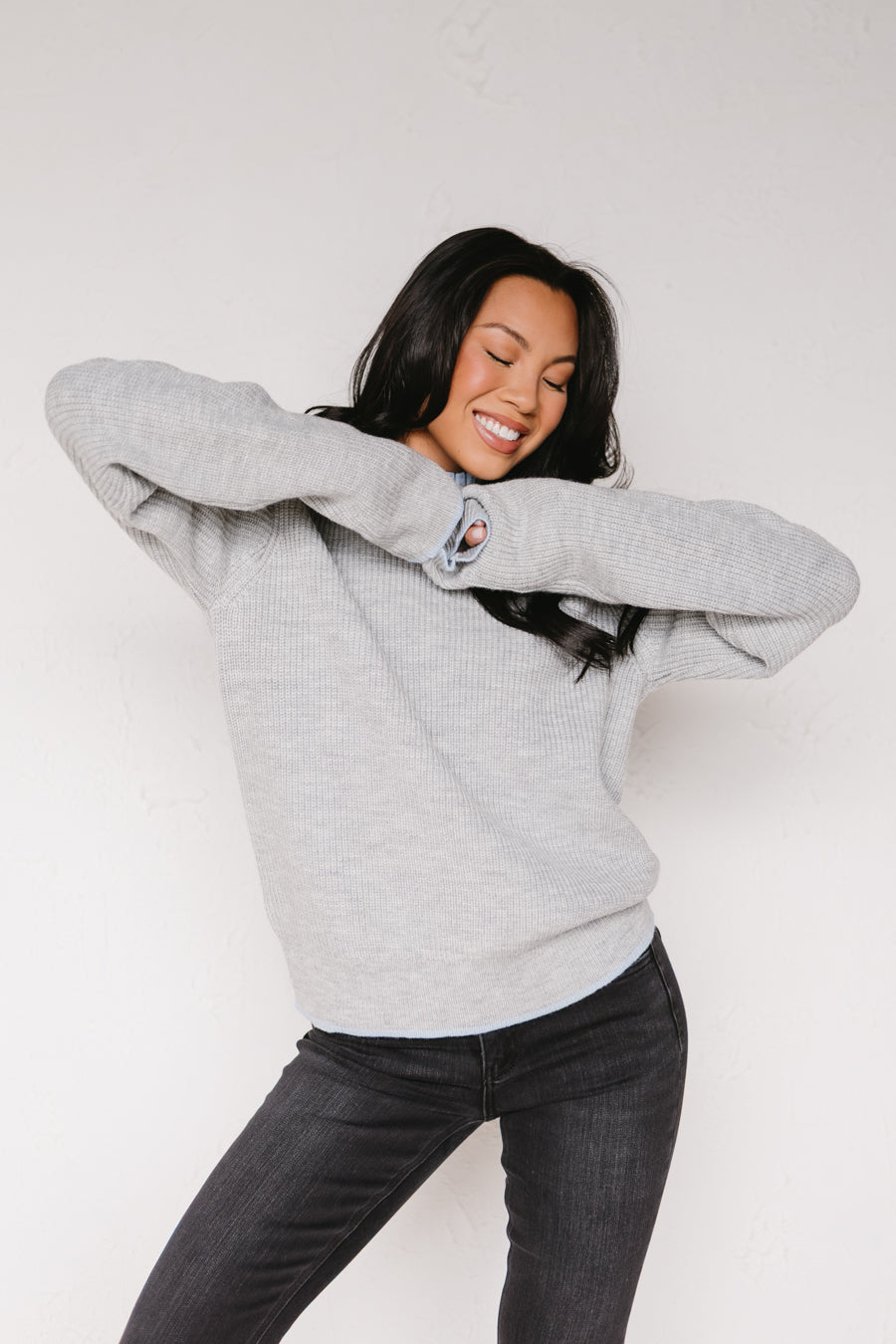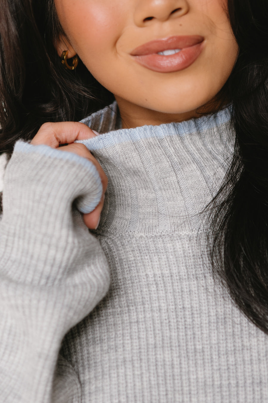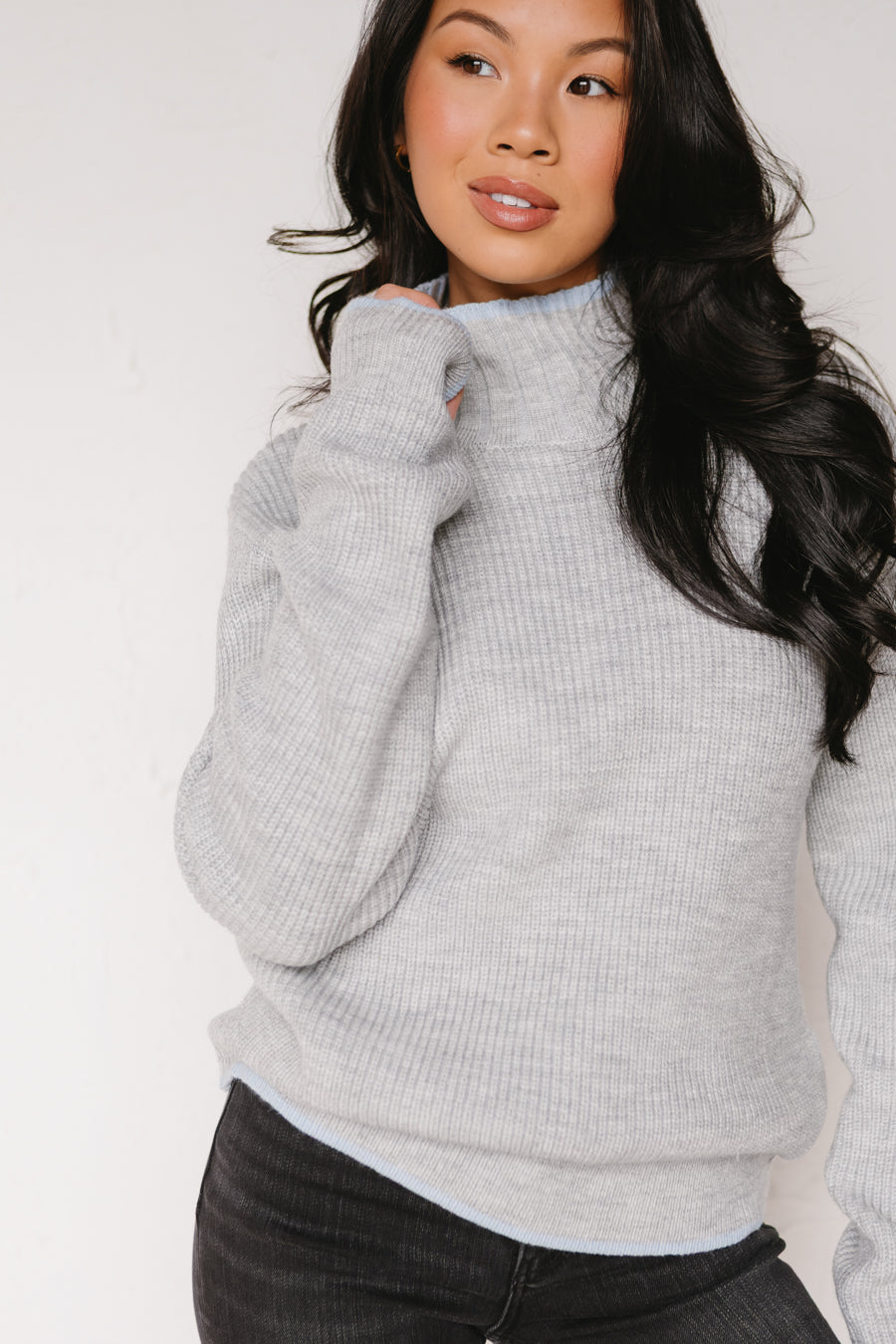 Pullover sweaterHigh mock necklineLong sleevesDropped shouldersRelaxed fit